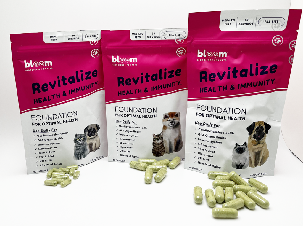 - A vascular blend, including hyaluronic acid, glucosamine, MSM, chondroitin, nattokinase and other building blocks needed for restoring your pet’s joints, skin, kidneys, and vascular system.